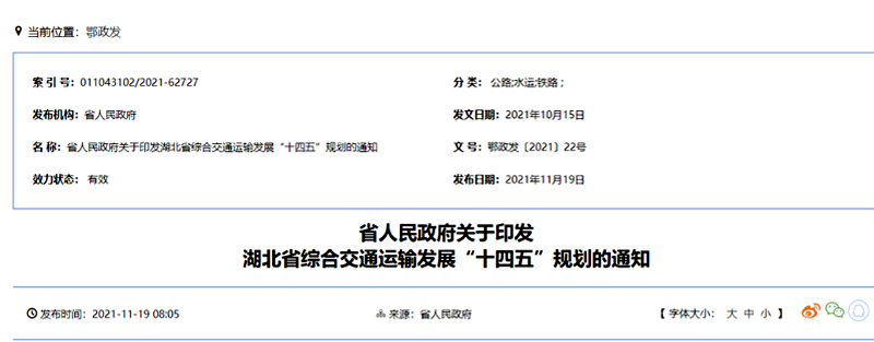 近日,《湖北省綜合交通運(yùn)輸發(fā)展“十四五”規(guī)劃》印發(fā),到2025年,湖北省綜合交通固定資產(chǎn)投資8200億元(不含城市交通),其中鐵路2400億元,公路水路5200億元,民航400億元,管道100億元。屆時(shí),湖北全省鐵路營業(yè)里程將達(dá)到7000公里,其中高速鐵路達(dá)3000公里(目前為1600公里左右);二級(jí)及以上公路里程達(dá)到42000公里,其中高速公路總里程達(dá)到8000公里,具備條件的鄉(xiāng)鎮(zhèn)實(shí)現(xiàn)雙通道連通。