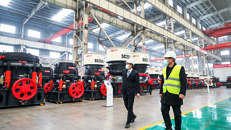 在生產上,備品備件種類齊全、數(shù)量充足,全面保障生產有序穩(wěn)定,機加工、焊接、裝配等生產穩(wěn)步開展,移動站、顎破、圓錐破、制砂機等設備源源不斷走下生產線,各大品類機器貨源充足,充分滿足客戶各類需求。