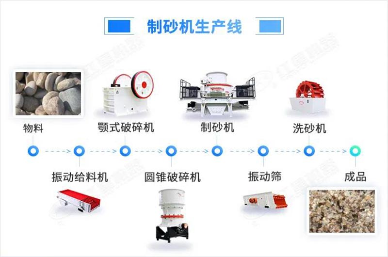 要生產(chǎn)高質(zhì)量砂石骨料,就離不開嚴(yán)格的生產(chǎn)流程。一般適合公路、鐵路用的砂石料為鵝卵石、花崗巖、石灰?guī)r等。這些大塊巖石經(jīng)過給料機(jī)進(jìn)入破碎設(shè)備進(jìn)行初級(jí)破碎和二級(jí)破碎,經(jīng)過傳輸帶進(jìn)入制砂機(jī)進(jìn)行細(xì)碎整形。最后經(jīng)過洗砂環(huán)節(jié),機(jī)制砂成品就生產(chǎn)好了。