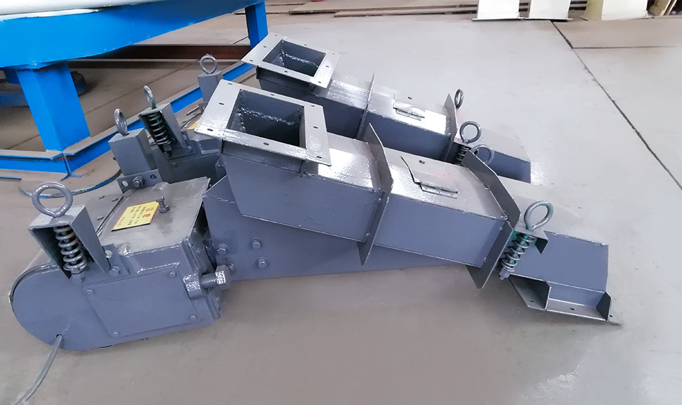 電磁振動給料機結(jié)構(gòu)上主要由料槽、電磁激振器、減振器組成,激振器又由電磁鐵(鐵芯和線圈)、銜鐵和裝在兩者之間的主振彈簧等構(gòu)成,是產(chǎn)生振動的激振源,激振器的工作可以通過一定的控制裝置進行控制。